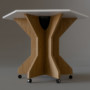 Cette table, au design unique, repose sur un solide piètement en chêne massif qui soutient un plateau hexagonal. Au centre de ce plateau se trouve un grand bac, spécialement conçu pour contenir des Lego, permettant ainsi aux employés de s’engager dans des activités créatives qui stimulent l’esprit et favorisent le bien-être au travail. Les six plaques Lego, intégrées au plateau, sont montées sur des éléments réversibles et peuvent être facilement rabattues après utilisation, transformant la table de jeu en un espace de travail ordinaire à volonté.